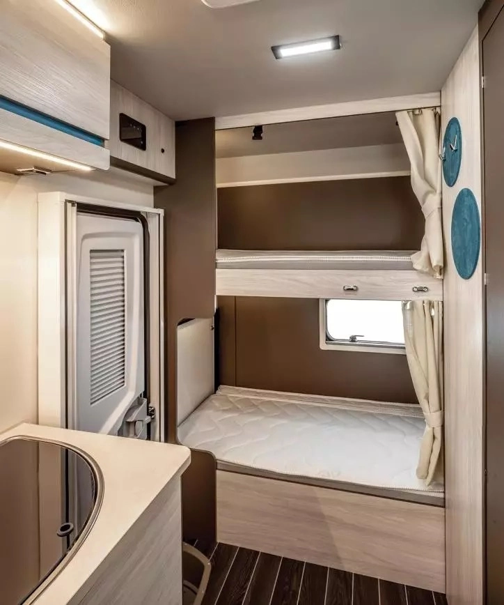 • dwa pojedyncze łóżka piętrowe w tylnej części zabudowy 800 x 2200mm