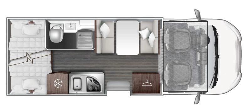– Łóżko dodatkowe tył ( kosztem bagażnika ) : 216 cm x 127cm )