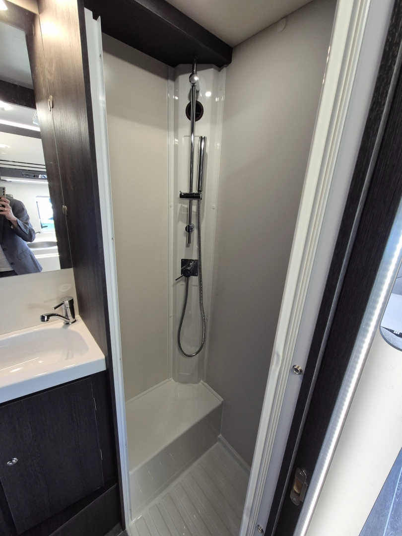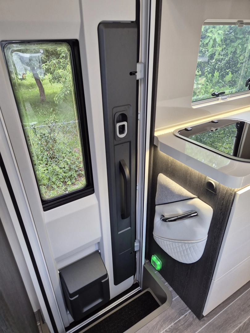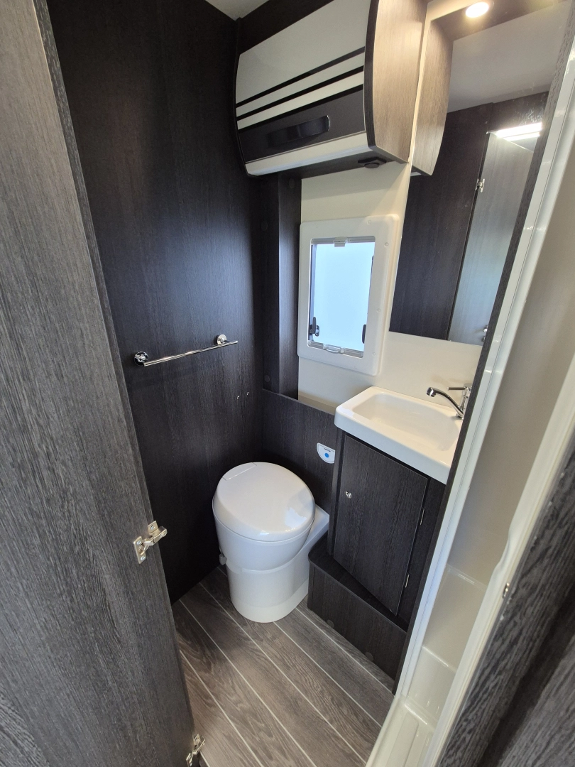 – Toaleta z kasetą DOMETIC opróżniana na zewnątrz z czujnikiem pełnej kasety