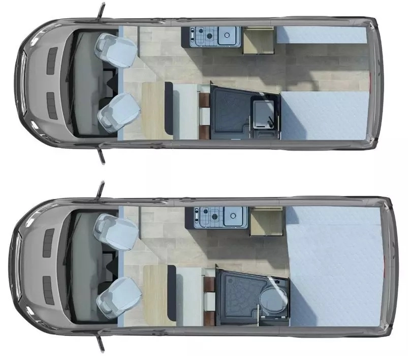 dwuosobowe łóżko poprzeczne w tylnej części pojazdu, 1300 x 1850 mm